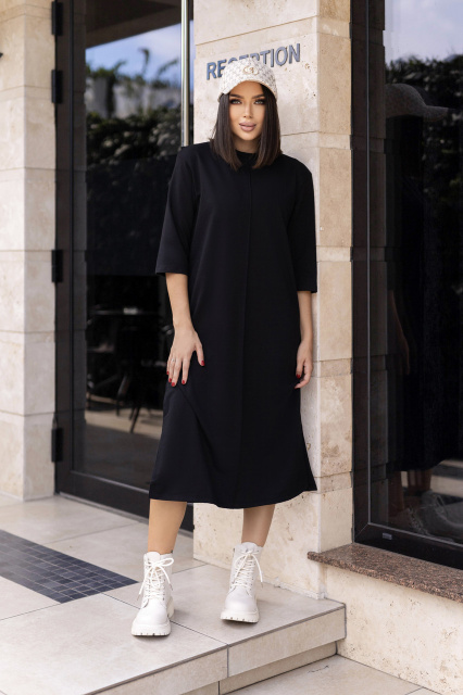 UA MarketВінницяGhjhgТовари та послугиСукні оптомПлаття демісезонні оптомТрикотажна сукня вільного крою «Berry» | Норма і батал Чорний, 42-44